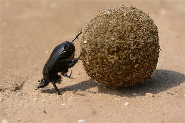 夢見恙螂正在推走便球,預示著煩惱事都會得到解決。
