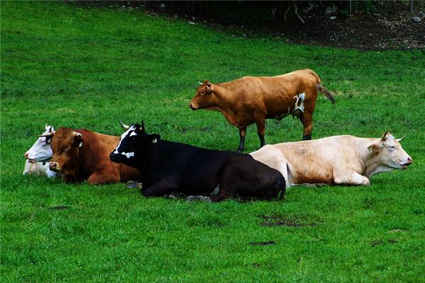 夢中看到粗壯、毛色光澤的牛群,正埋頭吃草,表示有志趣相投的伴侶,帶給你繁榮和快樂。
